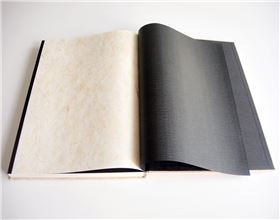 305*391 平背硬殼精裝 封面麻布包皮殼后絲網(wǎng)印白,再壓凹,封底壓凹貼不干膠條碼,鎖線,粘環(huán)襯,前一張單扉,平背硬殼精裝, 函套包面后燙黑金或燙黑漆,上下兩頭裱布,函套內(nèi)裱120G雙膠紙 書西式翻,函套中式翻,帶函套連函套塑封