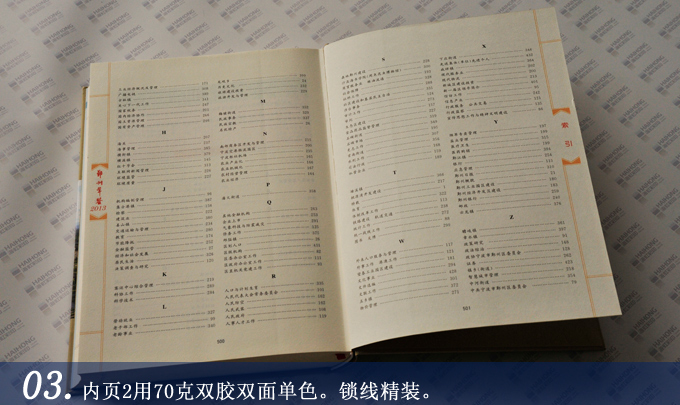 - 封面150克銀灰絲紋紙燙金,環(huán)襯150克東方書紙,內(nèi)頁1用128克雙銅,雙面四色,內(nèi)頁2用70克東方書紙,雙面單色。圓背鎖線精裝。